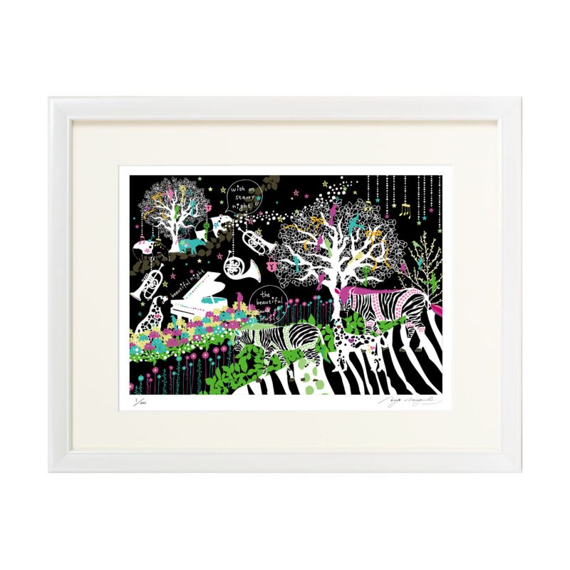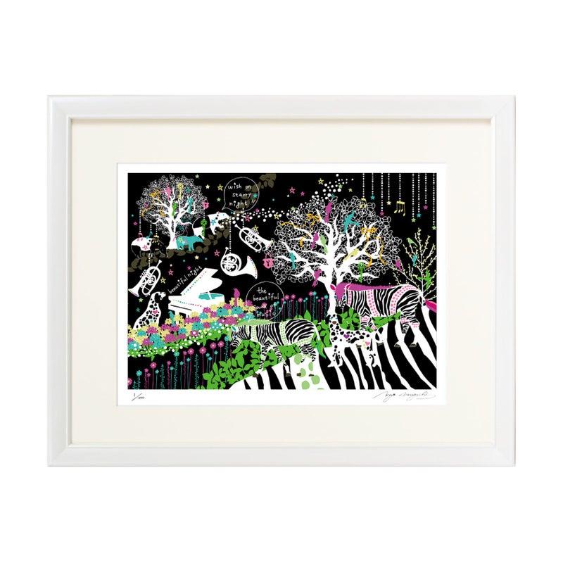 イラストレーター、グラフィックアーティストとして活動している「ホラグチカヨ」の作品が版画になりました。おんなのこ、植物、動物などさまざまなモチーフが重なり合う色鮮やかで個性的な作品をインテリアにいかかでしょうか。