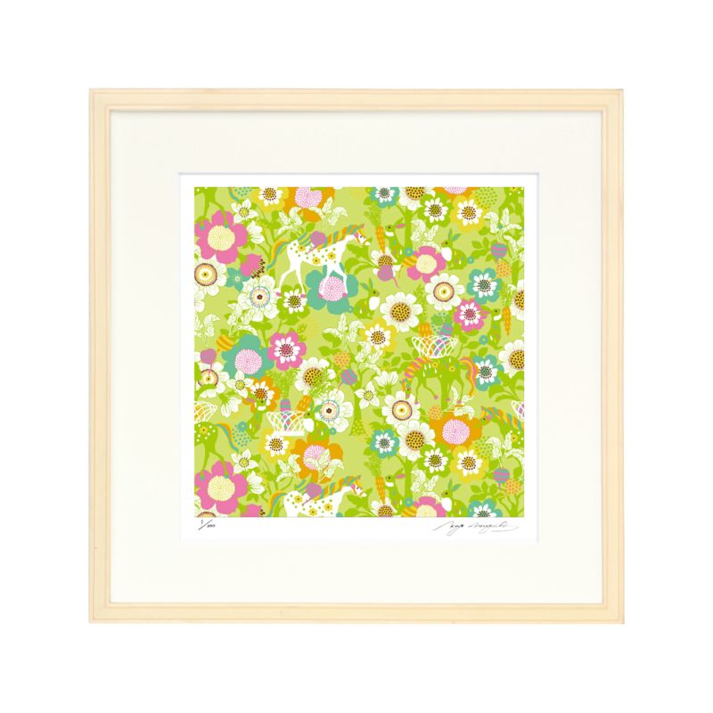 イラストレーター、グラフィックアーティストとして活動している「ホラグチカヨ」の作品が版画になりました。おんなのこ、植物、動物などさまざまなモチーフが重なり合う色鮮やかで個性的な作品をインテリアにいかかでしょうか。