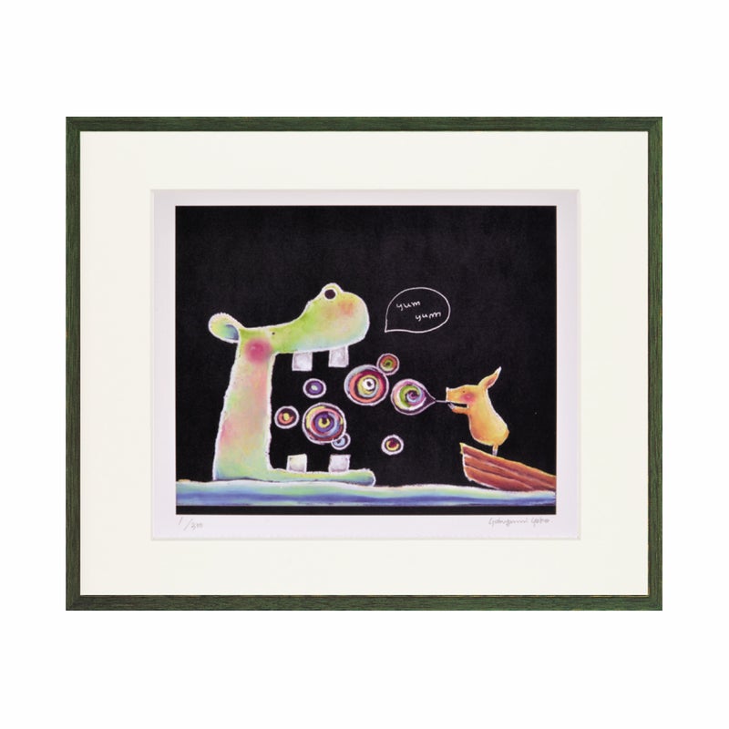チョークアートで多数の実績を持つ「やぶがみようこ」の作品が版画になりました。可愛らしくてちょっとユニークな動物たちによる癒しのアートです。図柄ごとに作家のサイン、エディションつきの版画作品で数量限定販売です。