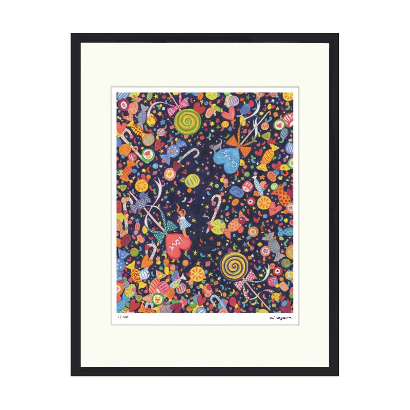 色鮮やかで楽しい世界観が気持ちを明るくする「ai sayama」のアート。多くの個性豊かな猫たちが登場します。図柄ごとに作家のサイン、エディションつきの版画作品で数量限定販売です。