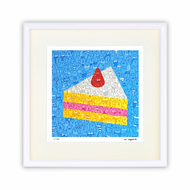 色鮮やかで楽しい世界観が気持ちを明るくする「ai sayama」のアート。多くの個性豊かな猫たちが登場します。図柄ごとに作家のサイン、エディションつきの版画作品で数量限定販売です。