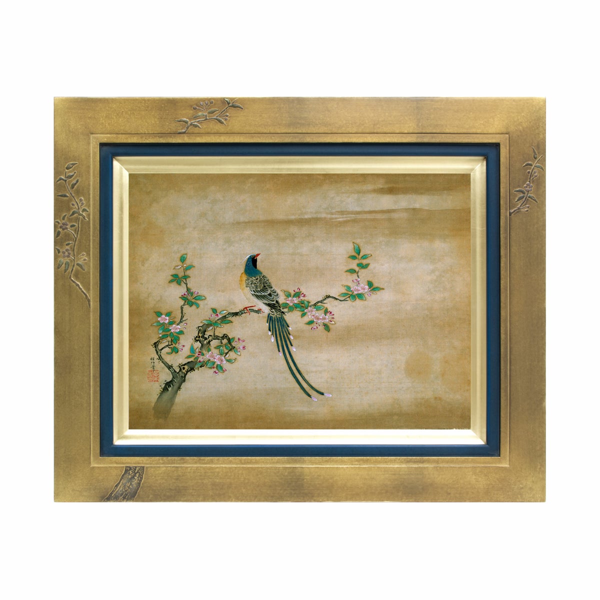 他の画像を見る 狩野深信「花鳥図」485×385mm ¥ 52,800 税込 あの名画が特別なフレームも合わせたアート作品に。職人の手作業による1点10点手作りのフレームは存在感のある豪華なインテリアになります。表面は作品の劣化を防ぐUVカットアクリル仕様。 カートに入れる お気に入りに登録する