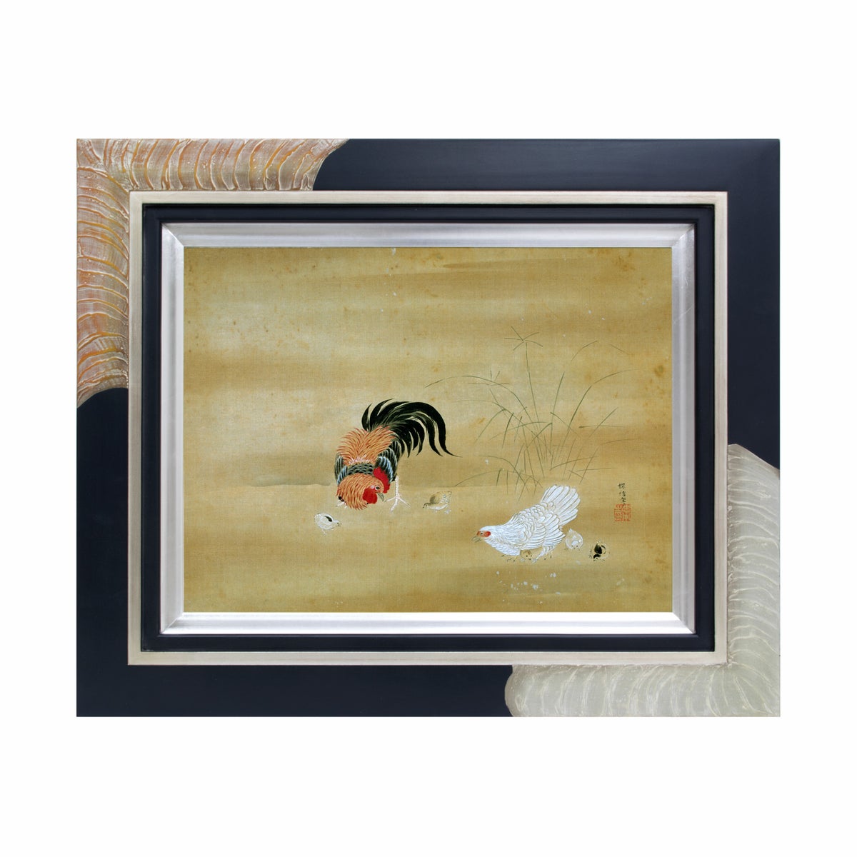 他の画像を見る 狩野深信「鶏図」485×385mm ¥ 52,800 税込 あの名画が特別なフレームも合わせたアート作品に。職人の手作業による1点11点手作りのフレームは存在感のある豪華なインテリアになります。表面は作品の劣化を防ぐUVカットアクリル仕様。 カートに入れる お気に入りに登録する