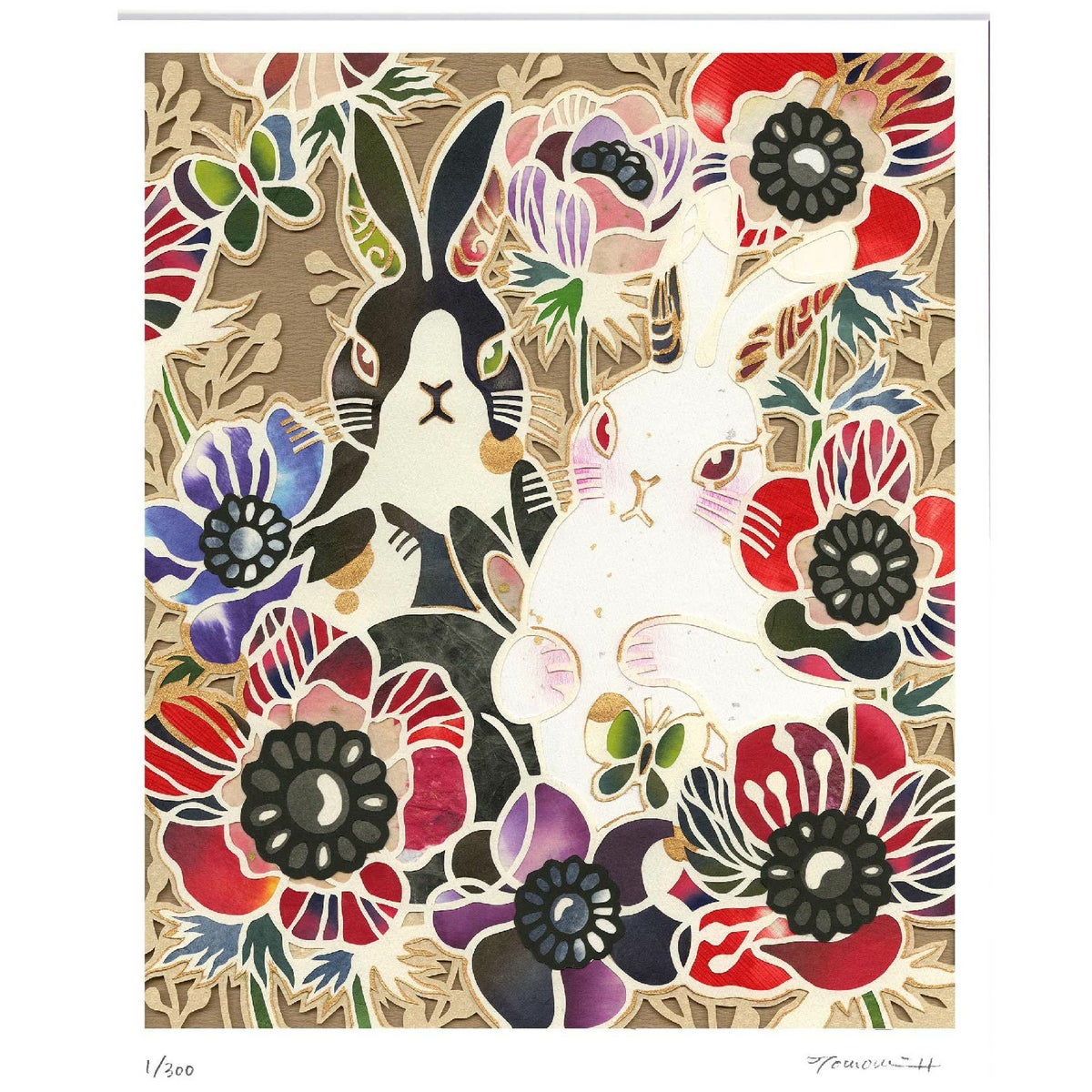 平石智美「うさぎとアネモネ」452×376mm
