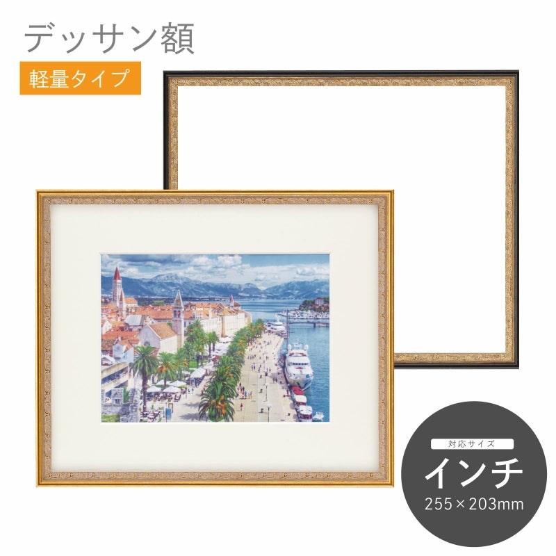 正確には合成樹脂(プラスチック)素材です。他の素材の額縁に比べて強度が劣りますが、軽いので持ち運びが容易というのが特徴。