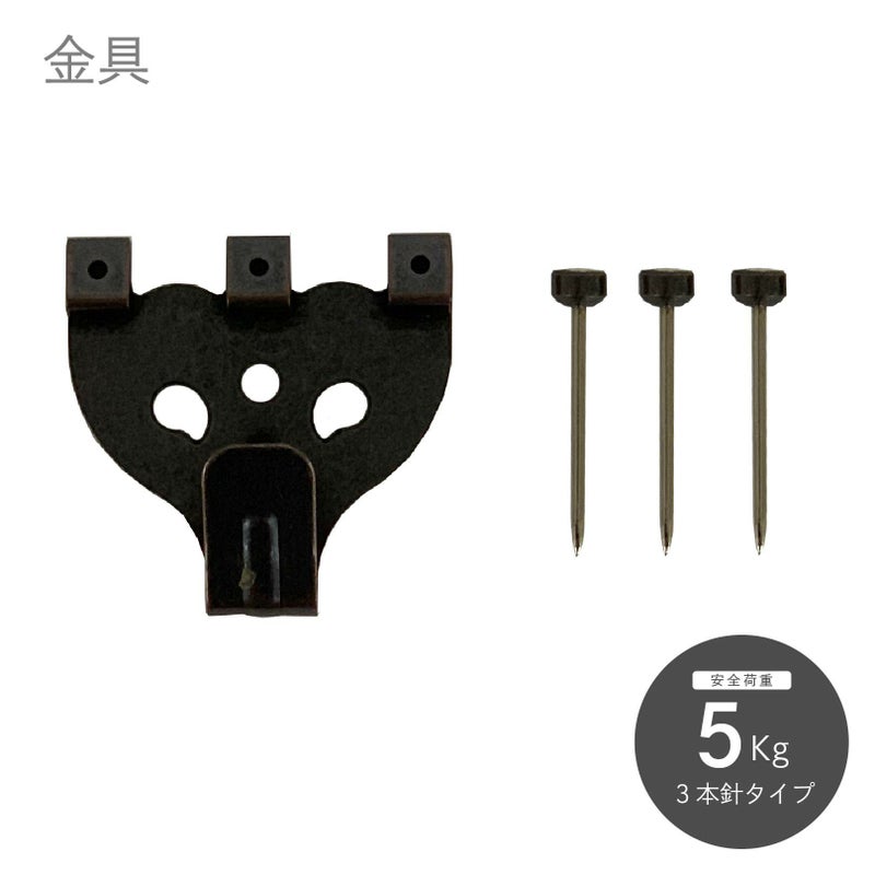 安全荷重は大(3本釘)で約5㎏までの重さに対応可能。