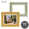 素材は樹脂製で軽く、内側と外側に入った装飾が特徴的な油額。程よい感じの装飾が作品に重厚感をプラス、そして豪華な雰囲気に変えてくれます。表面は全サイズUVカットアクリル仕様で大切な作品を紫外線から守ってくれます。