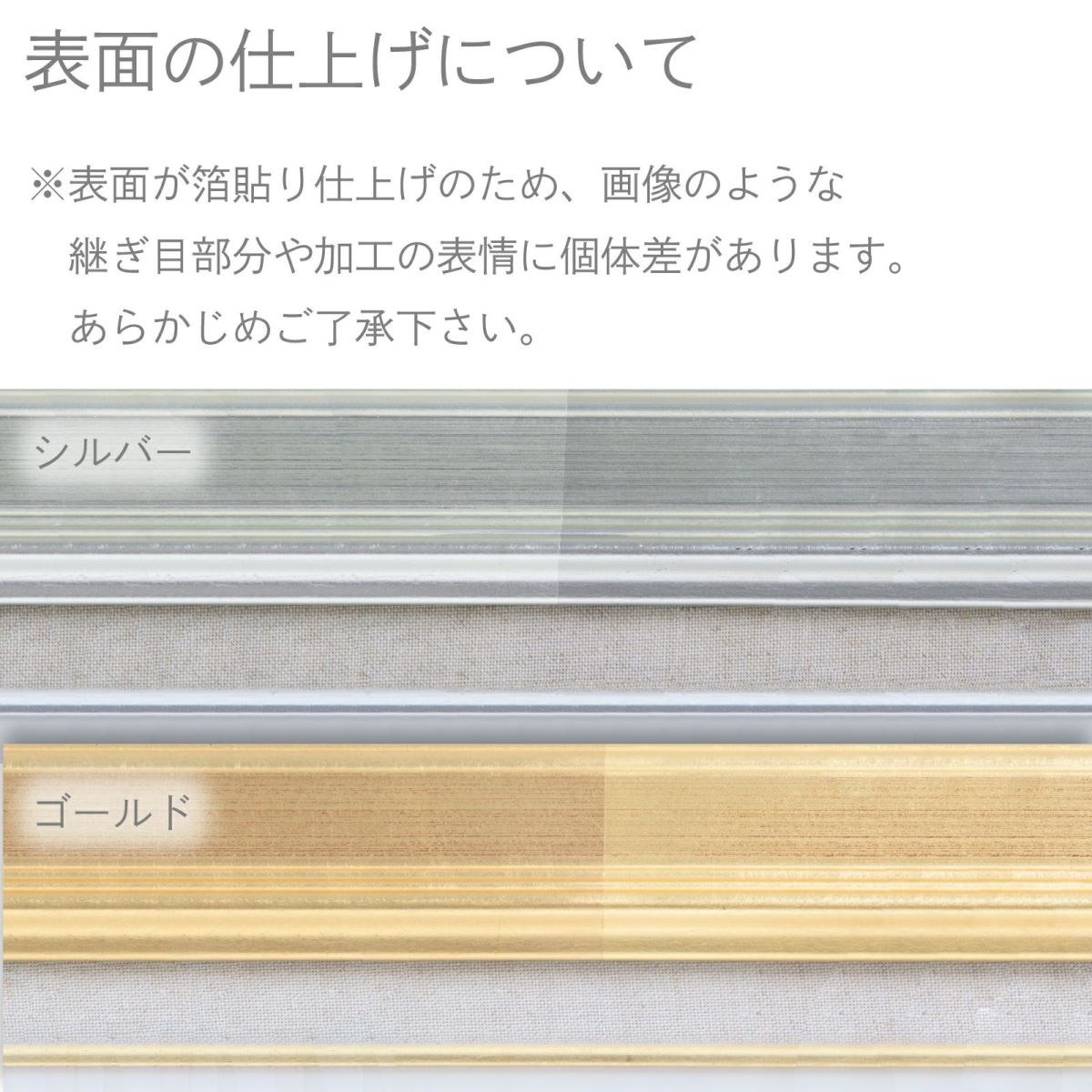 ベーシックなゴールドとシルバーの額縁で、どんな作品にも合わせやすく使い勝手抜群です。