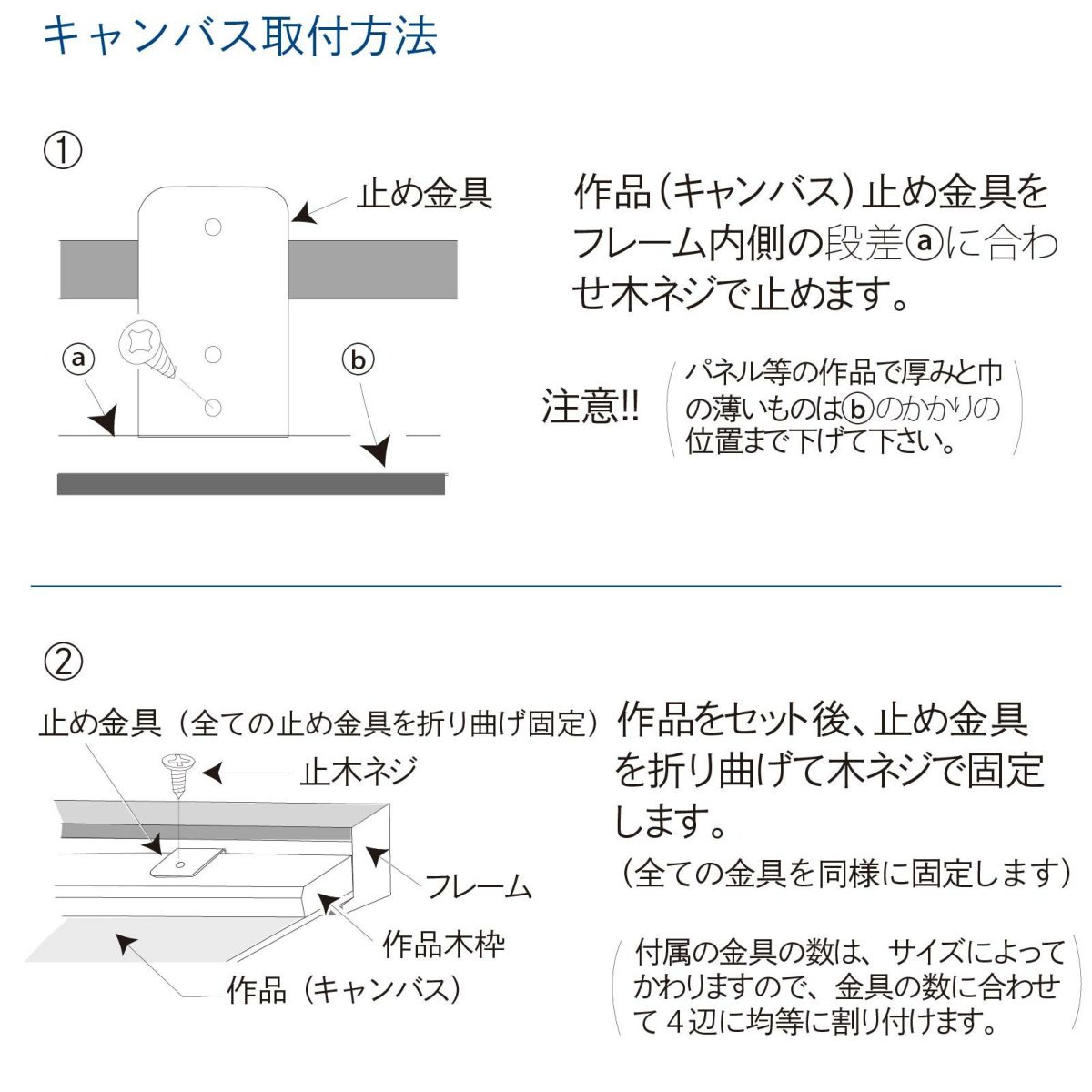 通常の油額とは異なり、額縁の裏からキャンバスをビス止めしてダイレクトに作品を飾ることができます。