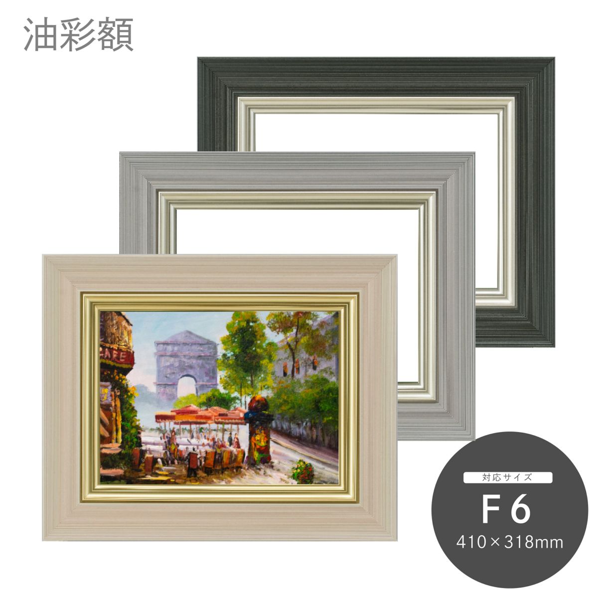 他の画像を見る 油彩額 3441N F10 ¥ 21,120 税込 優しい雰囲気を演出するナチュラルなデザイン。作品やお部屋を選ばないベーシックな形状で、風景画や静物画には最適のフレームです。 カートに入れる お気に入りに登録する