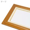 素材は木製。素材感の雰囲気を感じられるよう木目は活かしたまま塗装しています。木製ならではの温かみを感じさせる仕上りになっており油絵、日本画問わず、どんな作品とも相性のいい額縁となっています。