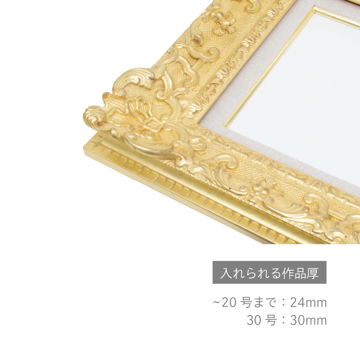 額縁の端に施された細やかな装飾とアクセントになる内側のラインが 作品の雰囲気を豪華に演出します。