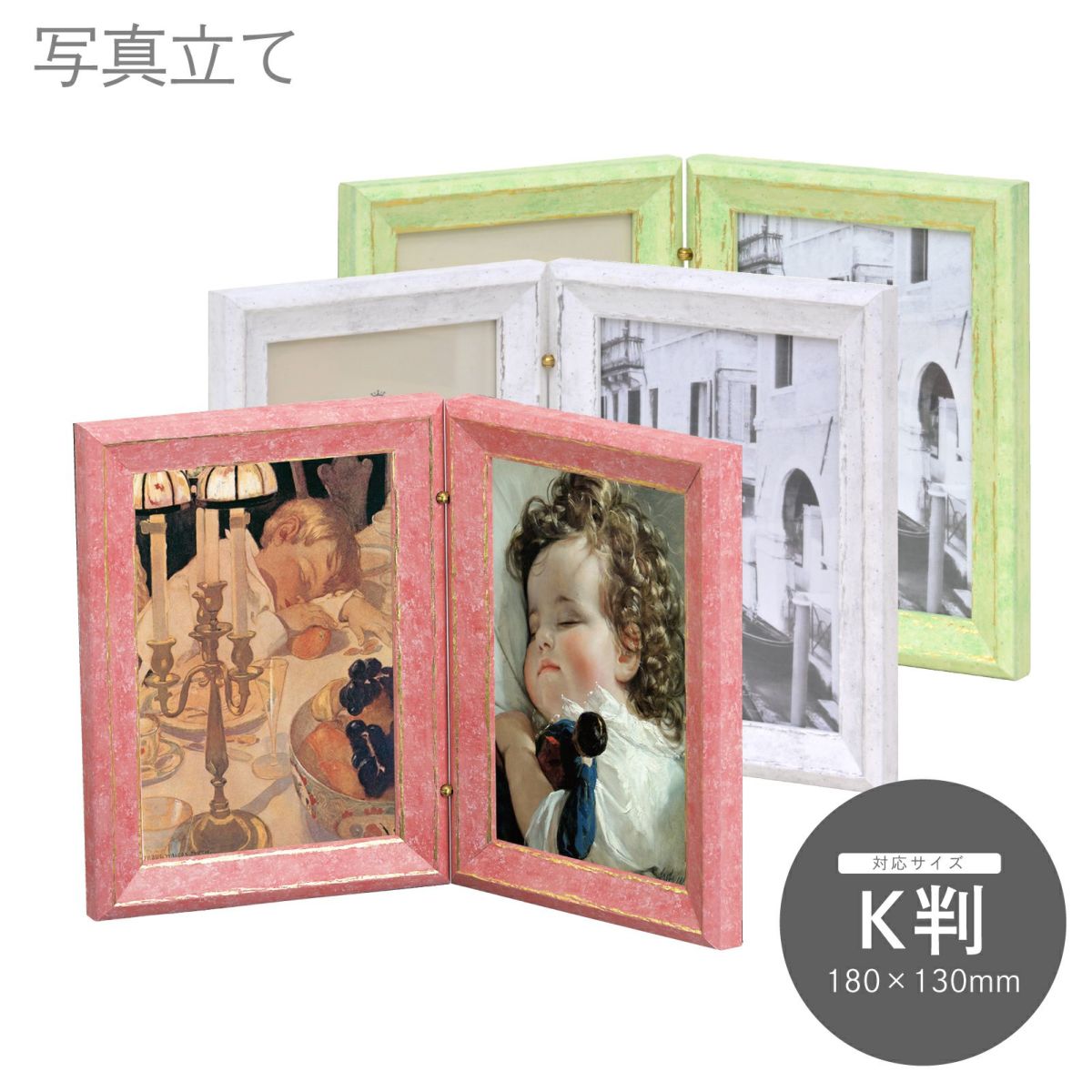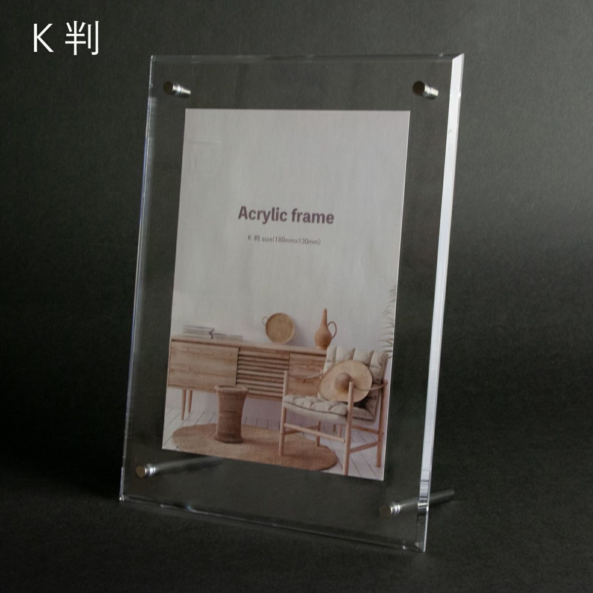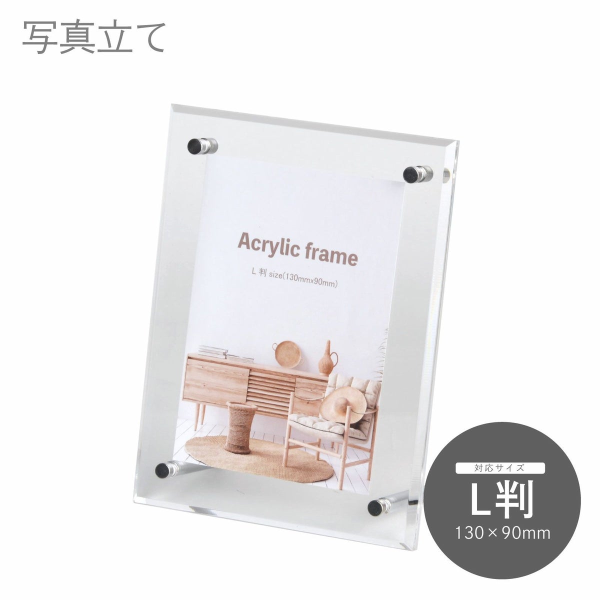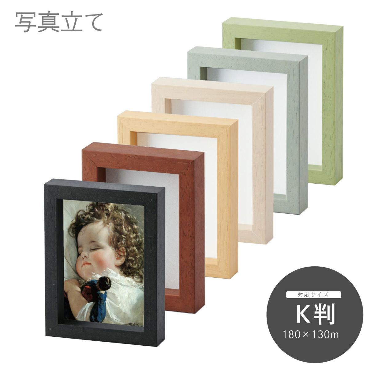 手軽に卓上に置けるスタンドタイプでハガキ判、キャビネ判等のサイズを取り揃えています。また、一部の商品は壁掛けも可能です。