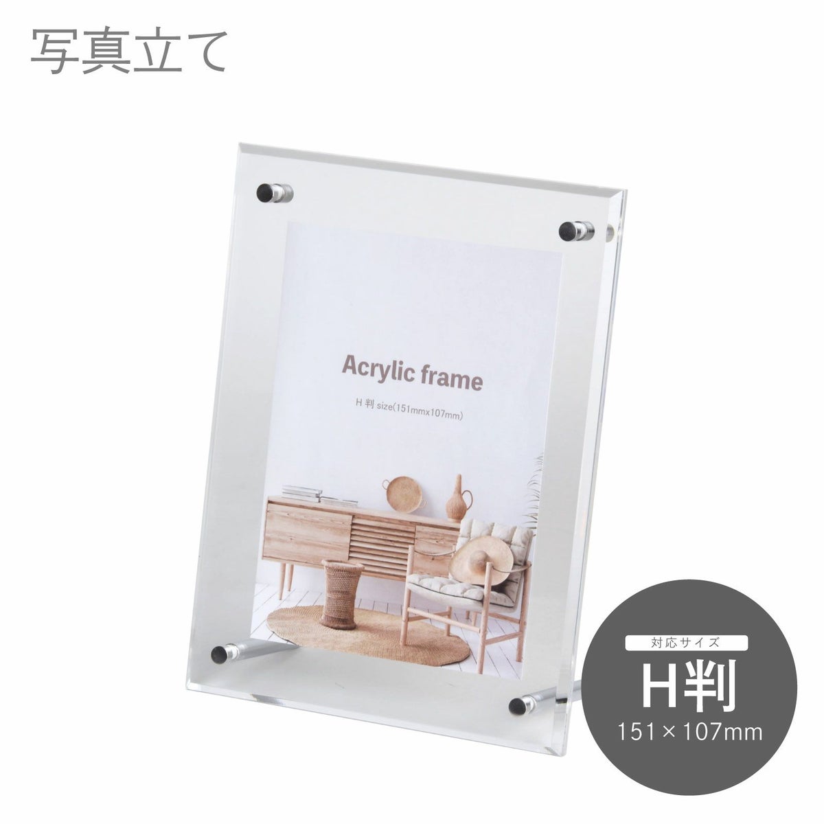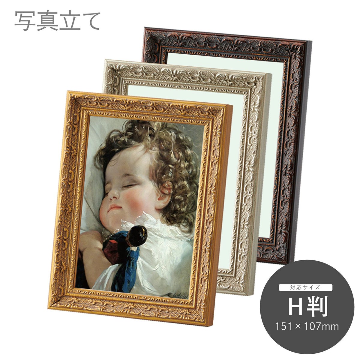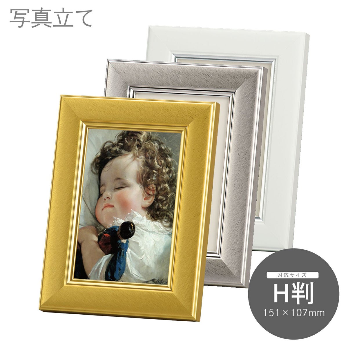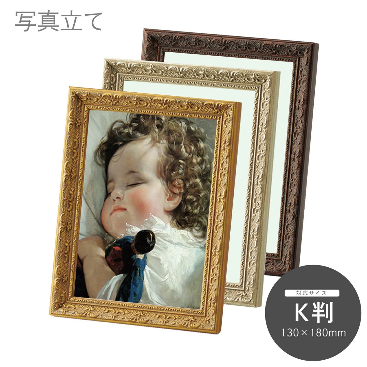 手軽に卓上に置けるスタンドタイプでハガキ判、キャビネ判等のサイズを取り揃えています。また、一部の商品は壁掛けも可能です。