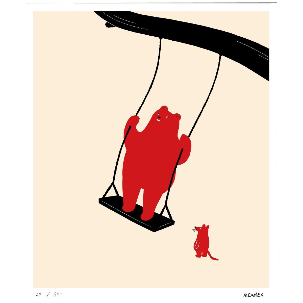 他の画像を見る MEOMEO「ブランコに乗るクマ」441×365mm ¥ 8,800 税込 イラストレーター「MEOMEO(メオメオ)」のイラストを版画作品に。どこか不思議で可愛らしい動物たちの世界をお楽しみください。図柄ごとに作家のサイン、エディションつきの版画作品で数量限定販売です。 カートに入れる お気に入りに登録する