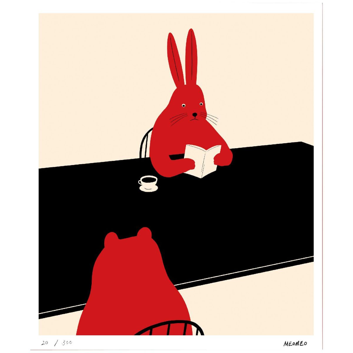 他の画像を見る MEOMEO「読書するウサギ」441×365mm ¥ 8,800 税込 イラストレーター「MEOMEO(メオメオ)」のイラストを版画作品に。どこか不思議で可愛らしい動物たちの世界をお楽しみください。図柄ごとに作家のサイン、エディションつきの版画作品で数量限定販売です。 カートに入れる お気に入りに登録する