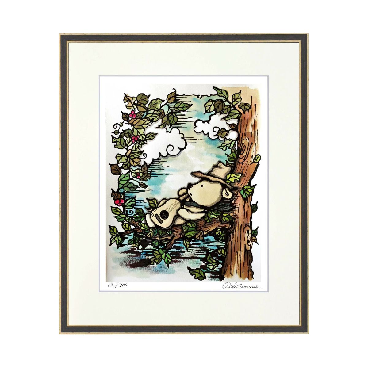他の画像を見る KANNA「ギターと青空」444×368mm ¥ 8,580 税込 イラストレーター「KANNA」が手掛けるスポイトによるアート作品。親しみやすくカントリーな雰囲気のある作品はおうちの素敵なインテリアに。図柄ごとに作家のサイン、エディションつきの版画作品で数量限定販売です。 カートに入れる お気に入りに登録する