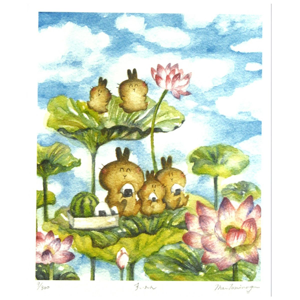 他の画像を見る とみながまい「すいれん」444×368mm ¥ 9,460 税込 イラストレーター「とみながまい」が描く、透明水彩絵具によって表現された季節の風景と楽しげな動物たちが版画作品になりました。図柄ごとに作家のサイン、エディションつきの版画作品で数量限定販売です。 カートに入れる お気に入りに登録する